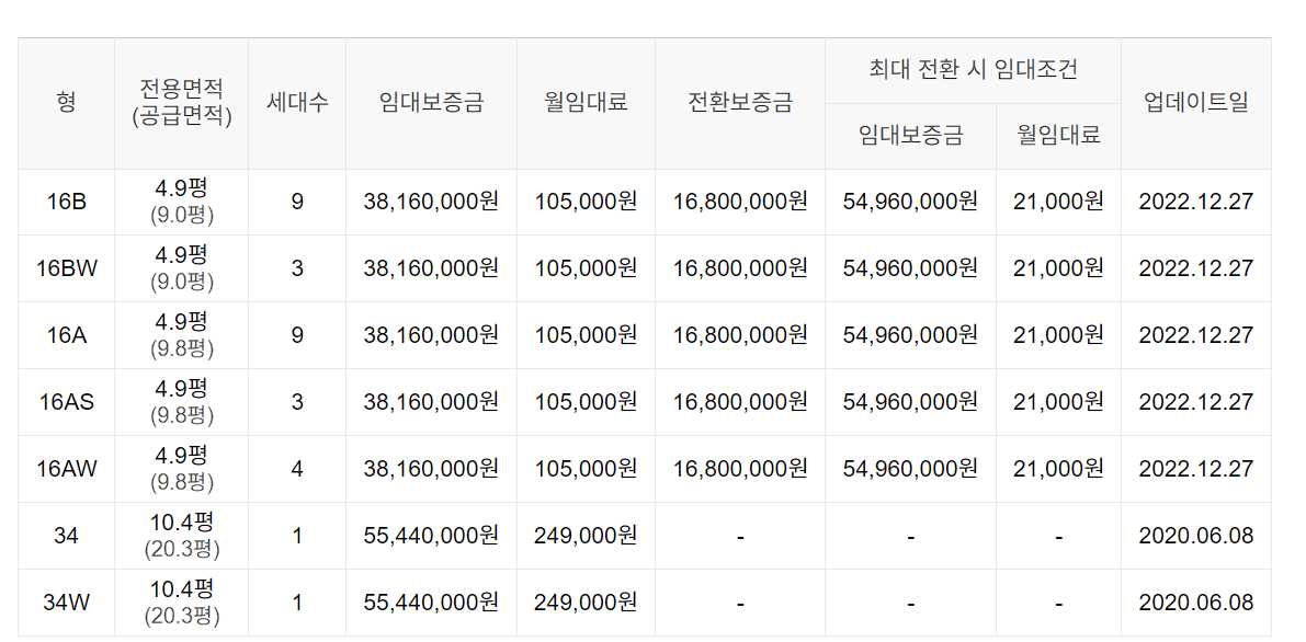 임대보증금 및 월 임대료는 입주자 모집공고일 기준이며, 보증금 최대 전환 시 변동될 수 있습니다.