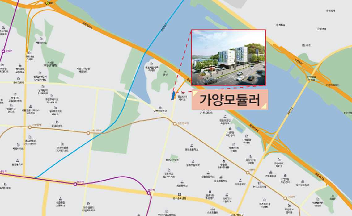 가양모듈러행복주택(가양동 1457-1)는 서울 강서구 양천향교역, 습지생태공원 근처에 위치하고 있습니다.