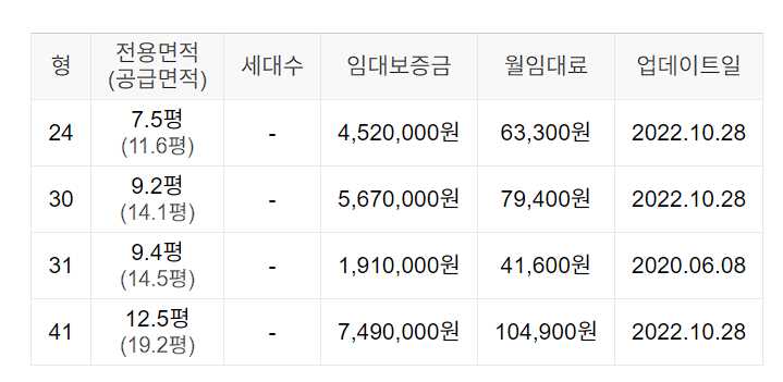 임대보증금 및 월 임대료는 입주자 모집공고일 기준이며, 보증금 최대 전환 시 변동될 수 있습니다.