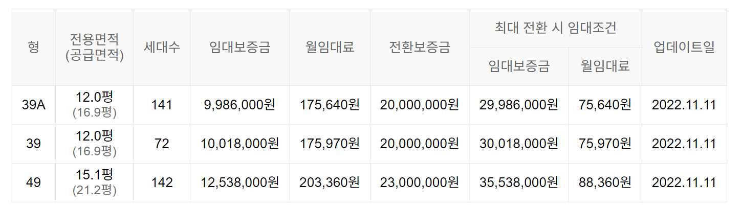 임대보증금 및 월 임대료는 입주자 모집공고일 기준이며, 보증금 최대 전환 시 변동될 수 있습니다.