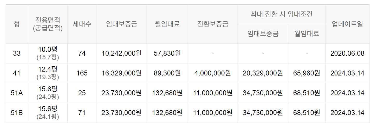 임대보증금 및 월 임대료는 입주자 모집공고일 기준이며, 보증금 최대 전환 시 변동될 수 있습니다.