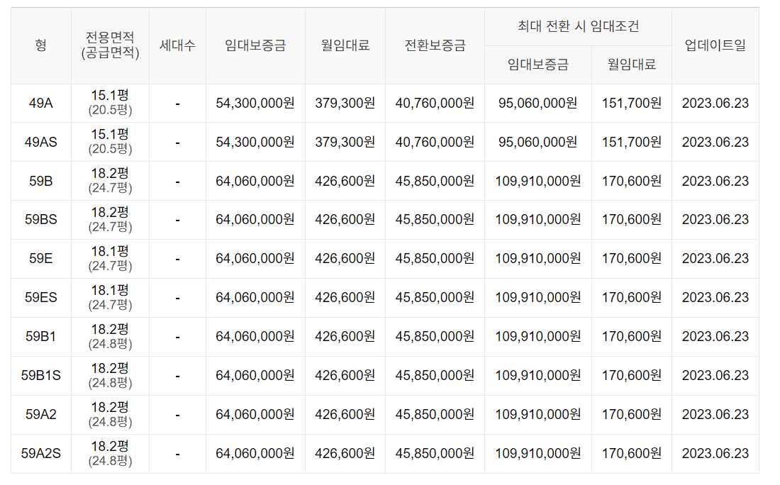 임대보증금 및 월 임대료는 입주자 모집공고일 기준이며, 보증금 최대 전환 시 변동될 수 있습니다.