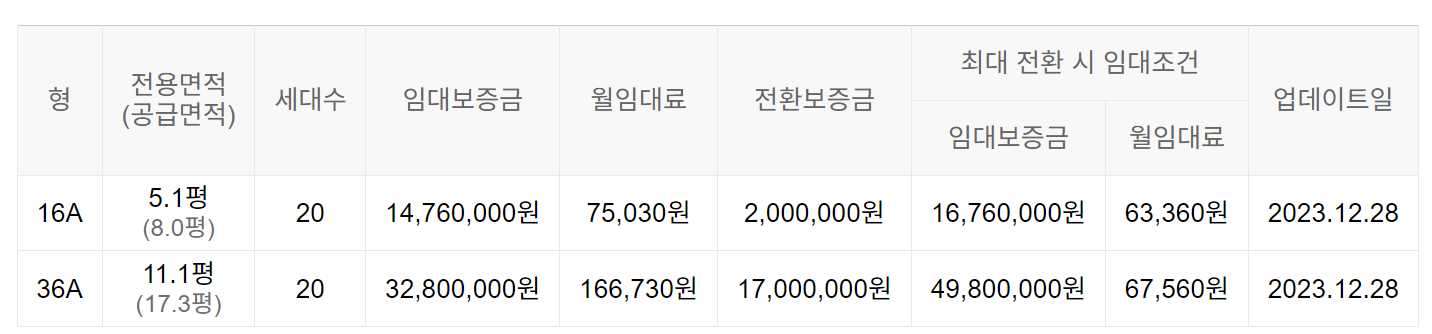 임대보증금 및 월 임대료는 입주자 모집공고일 기준이며, 보증금 최대 전환 시 변동될 수 있습니다.