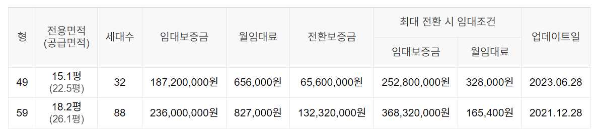 임대보증금 및 월 임대료는 입주자 모집공고일 기준이며, 보증금 최대 전환 시 변동될 수 있습니다.