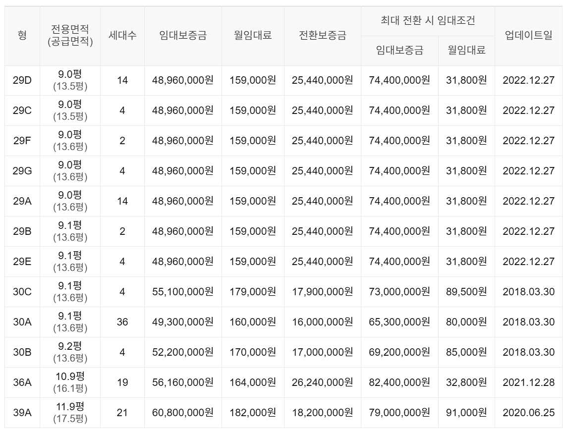 임대보증금 및 월 임대료는 입주자 모집공고일 기준이며, 보증금 최대 전환 시 변동될 수 있습니다.