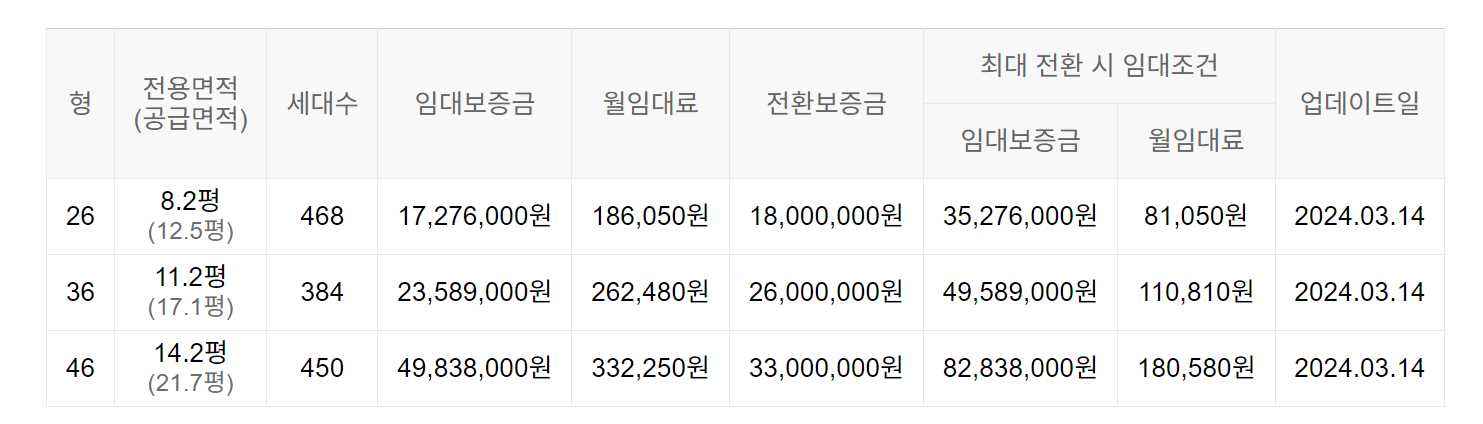 임대보증금 및 월 임대료는 입주자 모집공고일 기준이며, 보증금 최대 전환 시 변동될 수 있습니다.