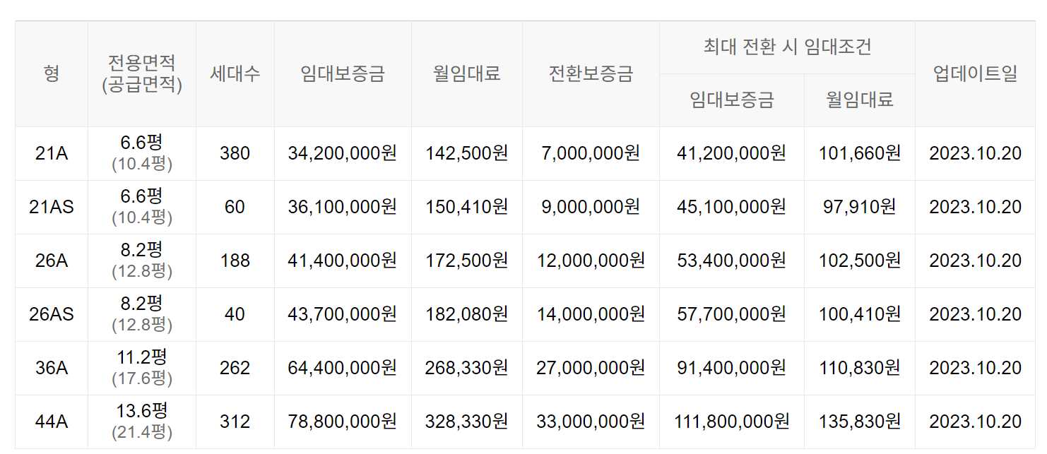 임대보증금 및 월 임대료는 입주자 모집공고일 기준이며, 보증금 최대 전환 시 변동될 수 있습니다.
