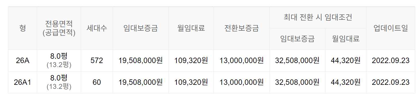임대보증금 및 월 임대료는 입주자 모집공고일 기준이며, 보증금 최대 전환 시 변동될 수 있습니다.