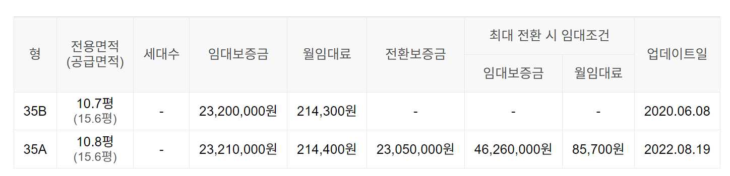 임대보증금 및 월 임대료는 입주자 모집공고일 기준이며, 보증금 최대 전환 시 변동될 수 있습니다.