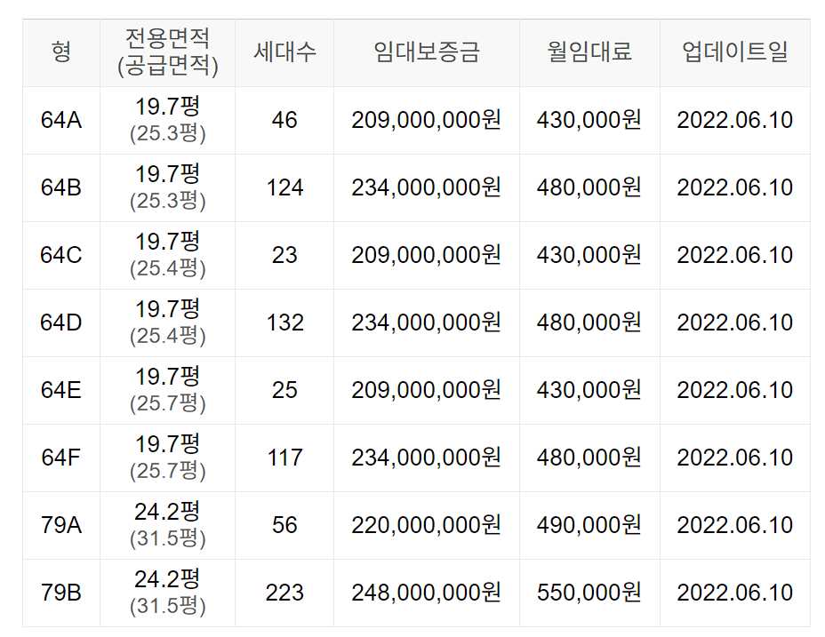 임대보증금 및 월 임대료는 입주자 모집공고일 기준이며, 보증금 최대 전환 시 변동될 수 있습니다.
