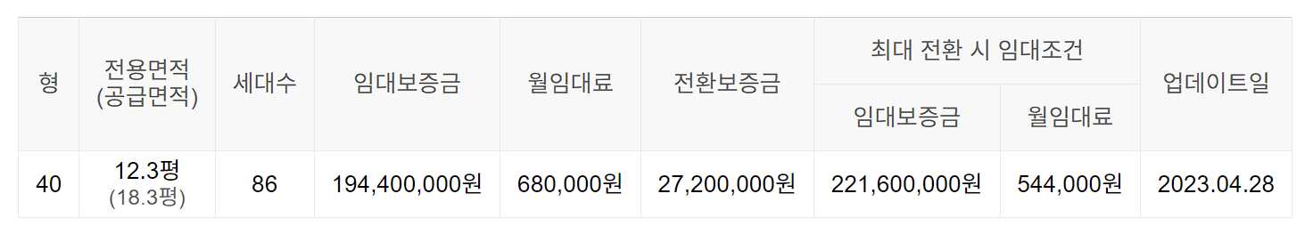 임대보증금 및 월 임대료는 입주자 모집공고일 기준이며, 보증금 최대 전환 시 변동될 수 있습니다.