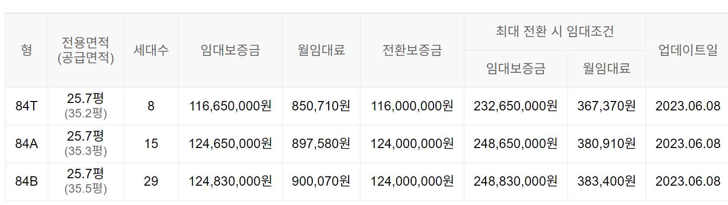임대보증금 및 월 임대료는 입주자 모집공고일 기준이며, 보증금 최대 전환 시 변동될 수 있습니다.