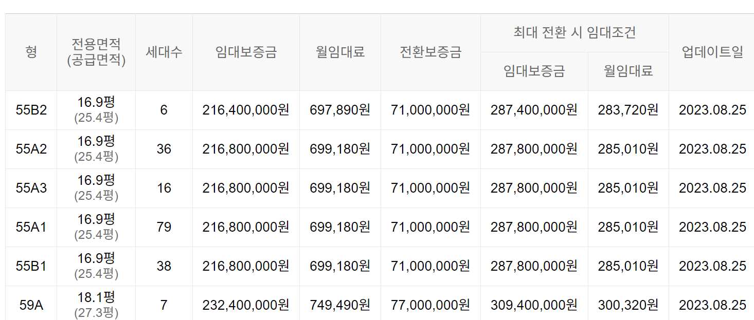 임대보증금 및 월 임대료는 입주자 모집공고일 기준이며, 보증금 최대 전환 시 변동될 수 있습니다.