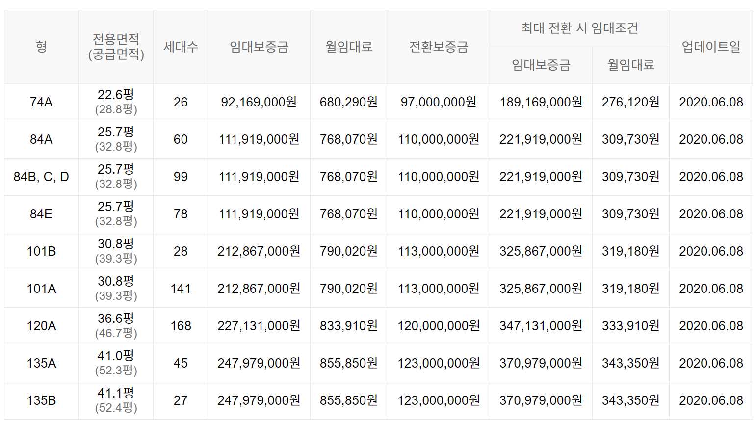 임대보증금 및 월 임대료는 입주자 모집공고일 기준이며, 보증금 최대 전환 시 변동될 수 있습니다.
