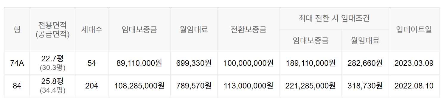 임대보증금 및 월 임대료는 입주자 모집공고일 기준이며, 보증금 최대 전환 시 변동될 수 있습니다.