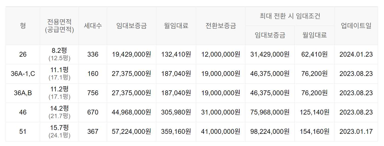 임대보증금 및 월 임대료는 입주자 모집공고일 기준이며, 보증금 최대 전환 시 변동될 수 있습니다.