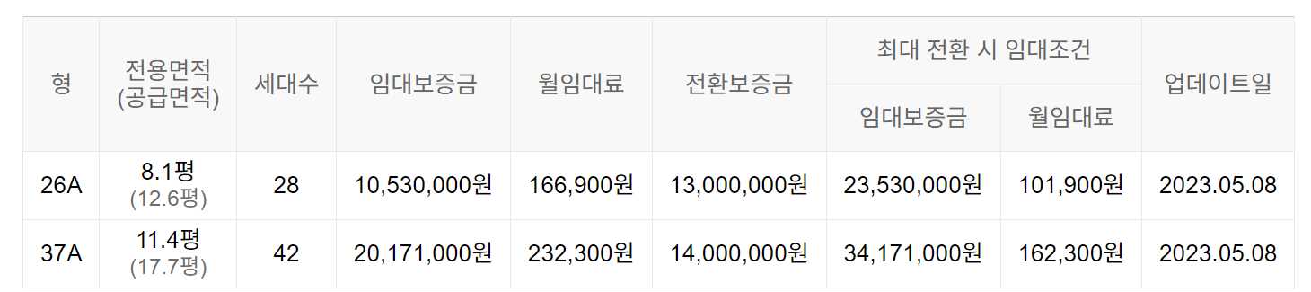 임대보증금 및 월 임대료는 입주자 모집공고일 기준이며, 보증금 최대 전환 시 변동될 수 있습니다.