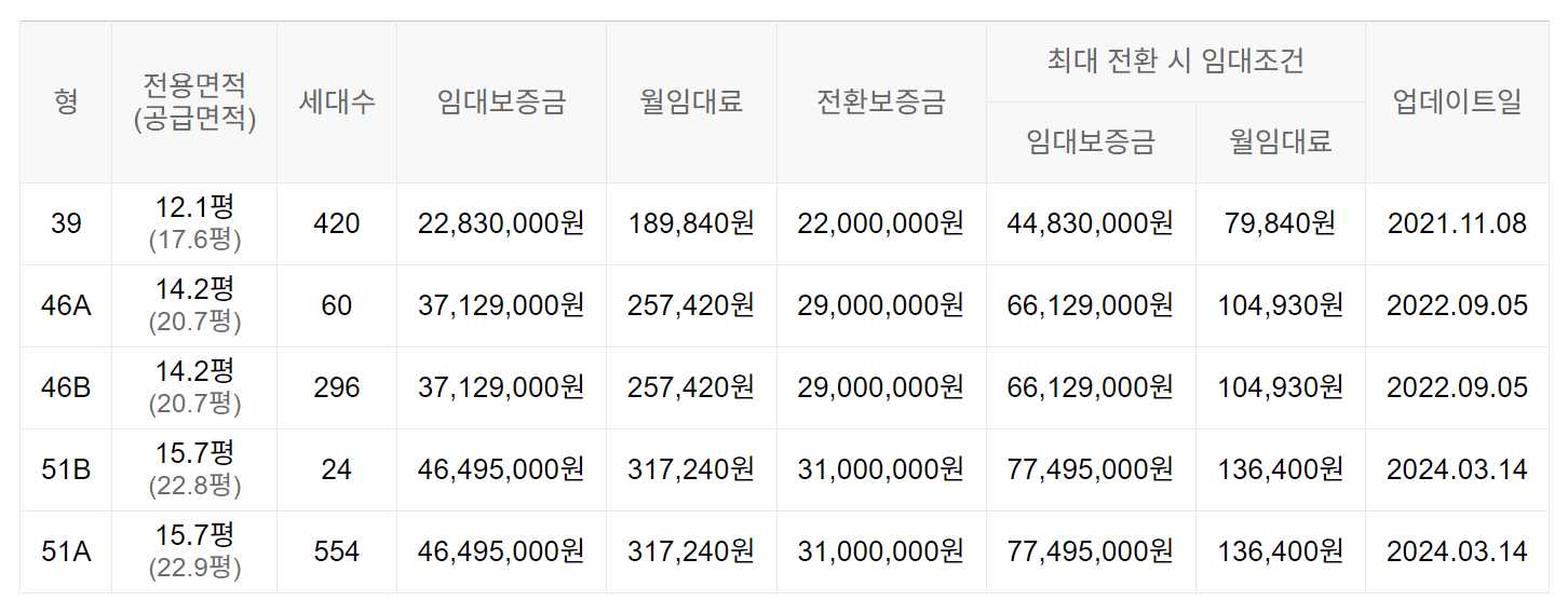 임대보증금 및 월 임대료는 입주자 모집공고일 기준이며, 보증금 최대 전환 시 변동될 수 있습니다.