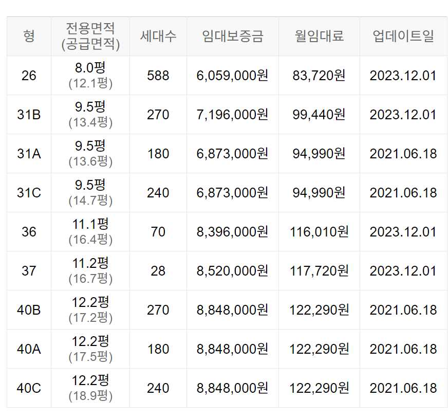 임대보증금 및 월 임대료는 입주자 모집공고일 기준이며, 보증금 최대 전환 시 변동될 수 있습니다.