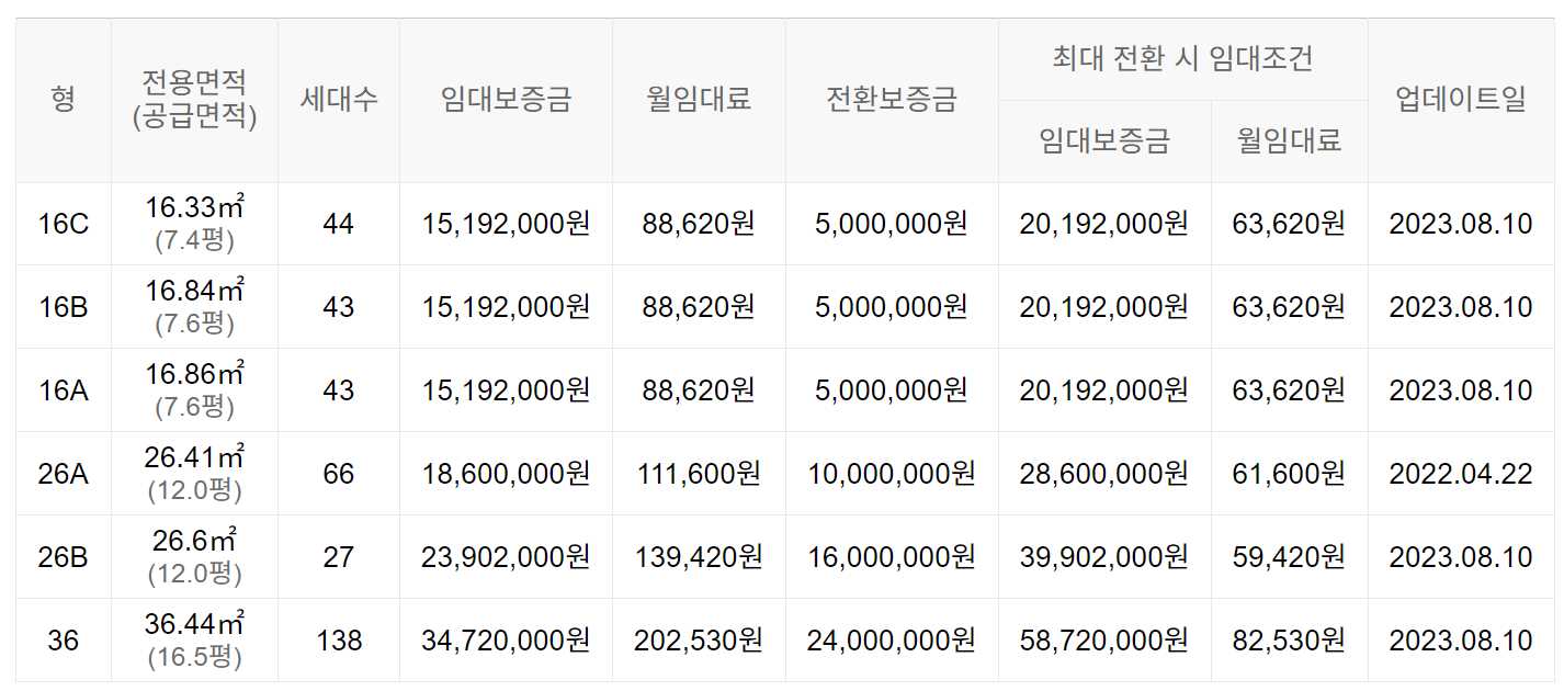임대보증금 및 월 임대료는 입주자 모집공고일 기준이며, 보증금 최대 전환 시 변동될 수 있습니다.