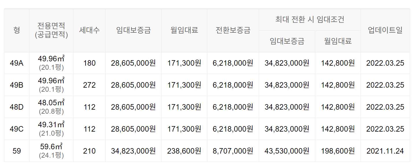 임대보증금 및 월 임대료는 입주자 모집공고일 기준이며, 보증금 최대 전환 시 변동될 수 있습니다.