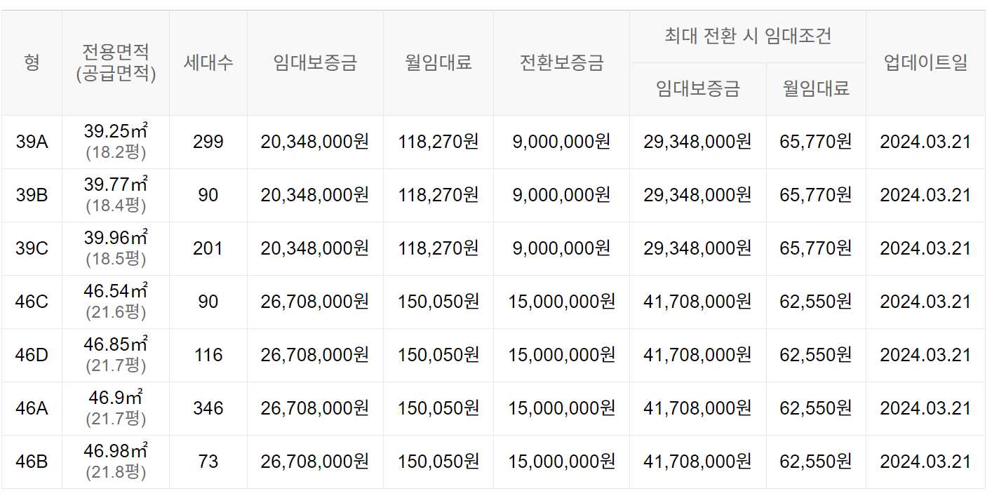 임대보증금 및 월 임대료는 입주자 모집공고일 기준이며, 보증금 최대 전환 시 변동될 수 있습니다.