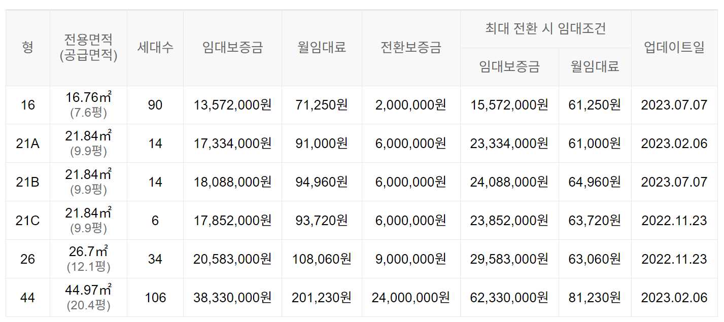 임대보증금 및 월 임대료는 입주자 모집공고일 기준이며, 보증금 최대 전환 시 변동될 수 있습니다.