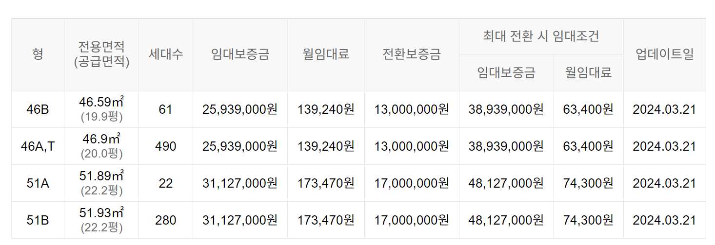 임대보증금 및 월 임대료는 입주자 모집공고일 기준이며, 보증금 최대 전환 시 변동될 수 있습니다.