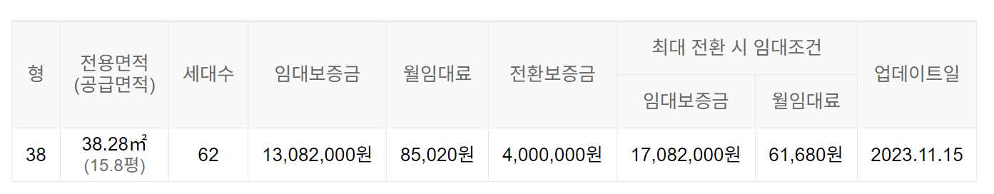 임대보증금 및 월 임대료는 입주자 모집공고일 기준이며, 보증금 최대 전환 시 변동될 수 있습니다.