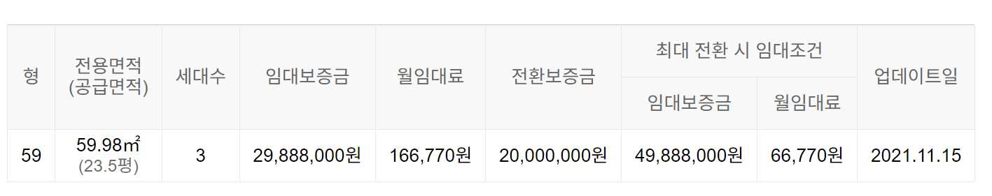 임대보증금 및 월 임대료는 입주자 모집공고일 기준이며, 보증금 최대 전환 시 변동될 수 있습니다.