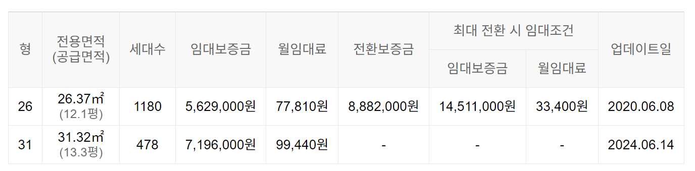 임대보증금 및 월 임대료는 입주자 모집공고일 기준이며, 보증금 최대 전환 시 변동될 수 있습니다.