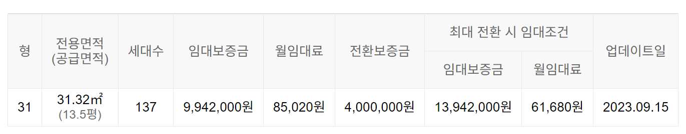임대보증금 및 월 임대료는 입주자 모집공고일 기준이며, 보증금 최대 전환 시 변동될 수 있습니다.