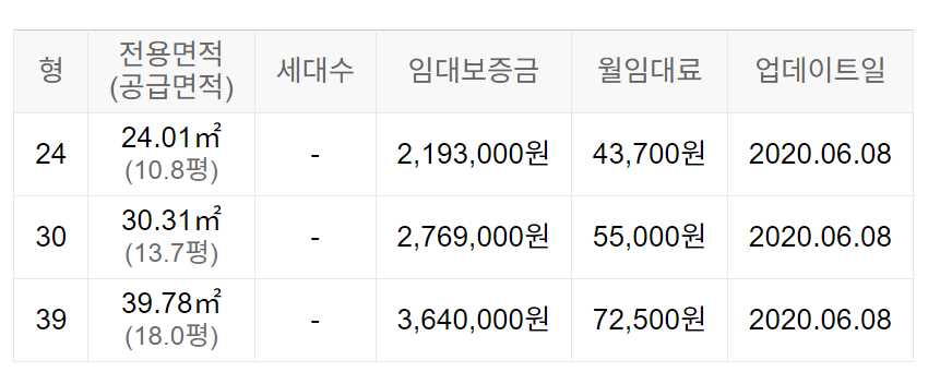 임대보증금 및 월 임대료는 입주자 모집공고일 기준이며, 보증금 최대 전환 시 변동될 수 있습니다.