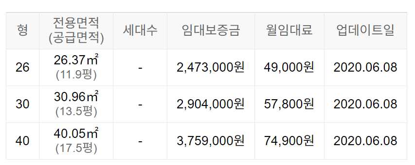 임대보증금 및 월 임대료는 입주자 모집공고일 기준이며, 보증금 최대 전환 시 변동될 수 있습니다.