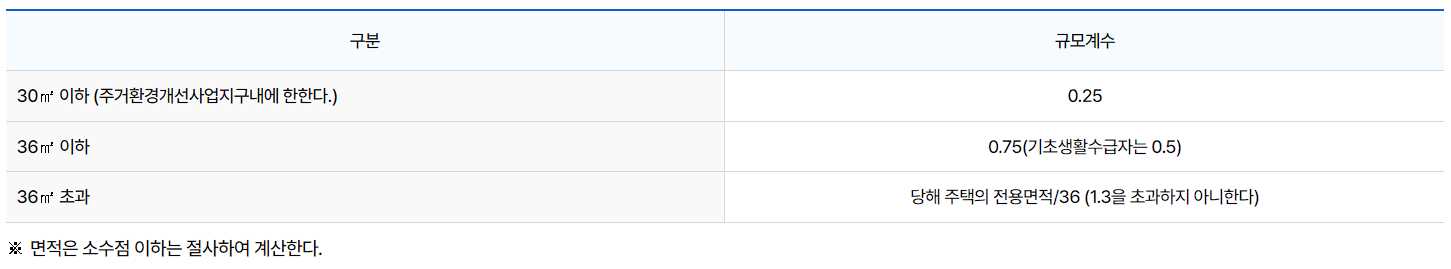 표준임대보증금 = 당해주택가격 * 20/100 * 규모계수 * 지역계수