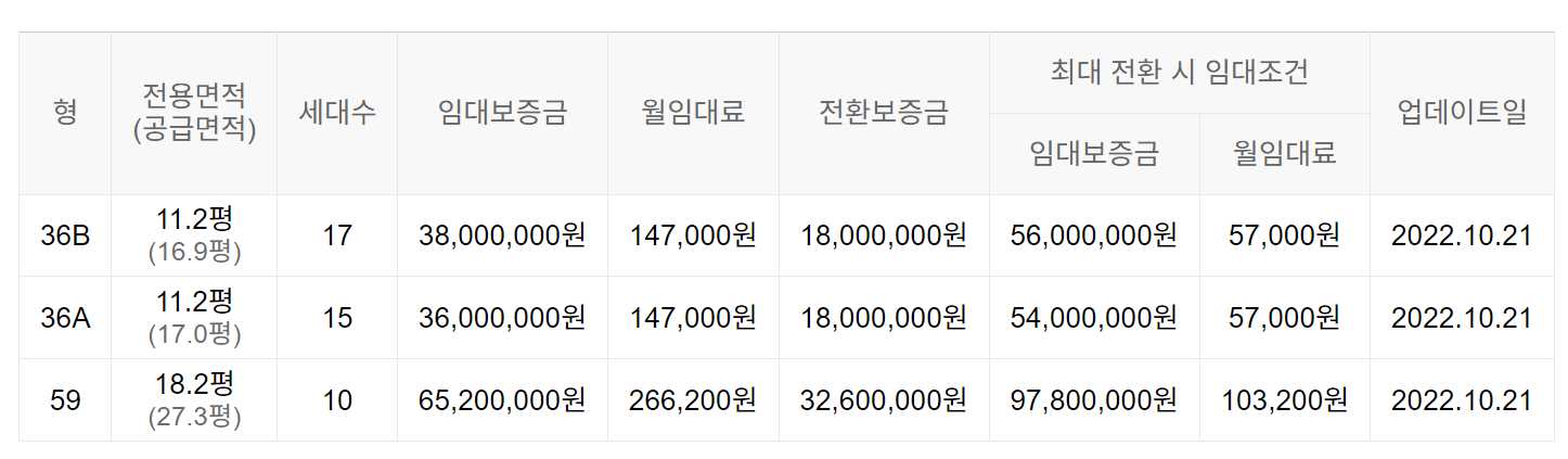 임대보증금 및 월 임대료는 입주자 모집공고일 기준이며, 보증금 최대 전환 시 변동될 수 있습니다.