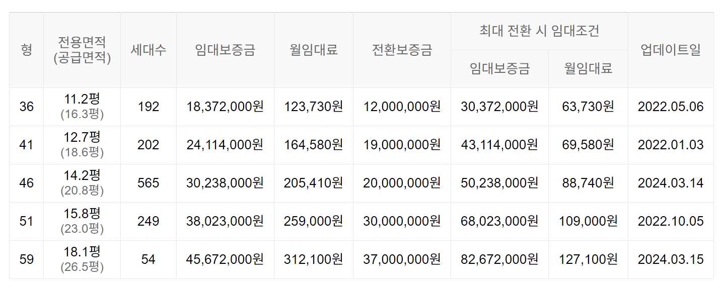 임대보증금 및 월 임대료는 입주자 모집공고일 기준이며, 보증금 최대 전환 시 변동될 수 있습니다.