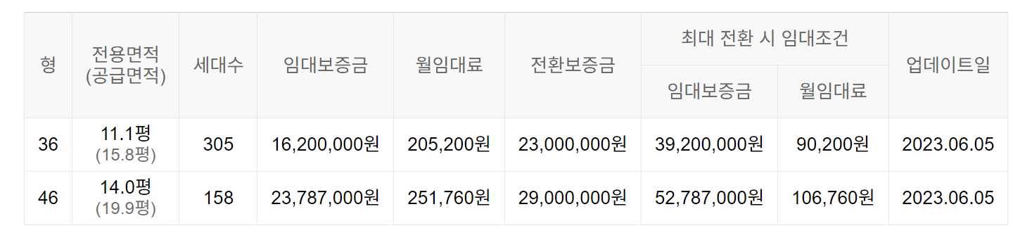 임대보증금 및 월 임대료는 입주자 모집공고일 기준이며, 보증금 최대 전환 시 변동될 수 있습니다.
