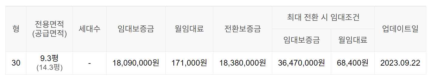 임대보증금 및 월 임대료는 입주자 모집공고일 기준이며, 보증금 최대 전환 시 변동될 수 있습니다.