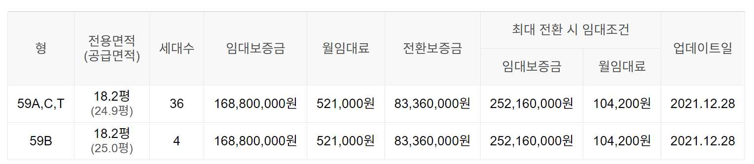 임대보증금 및 월 임대료는 입주자 모집공고일 기준이며, 보증금 최대 전환 시 변동될 수 있습니다.