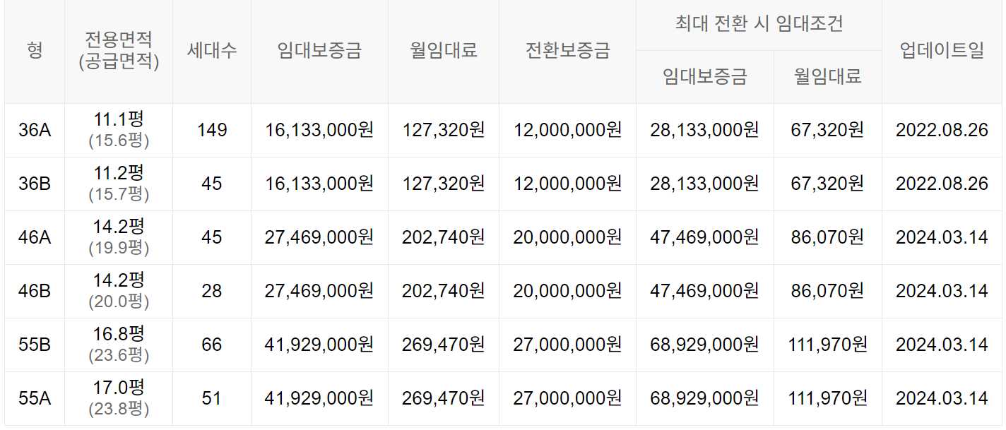 임대보증금 및 월 임대료는 입주자 모집공고일 기준이며, 보증금 최대 전환 시 변동될 수 있습니다.