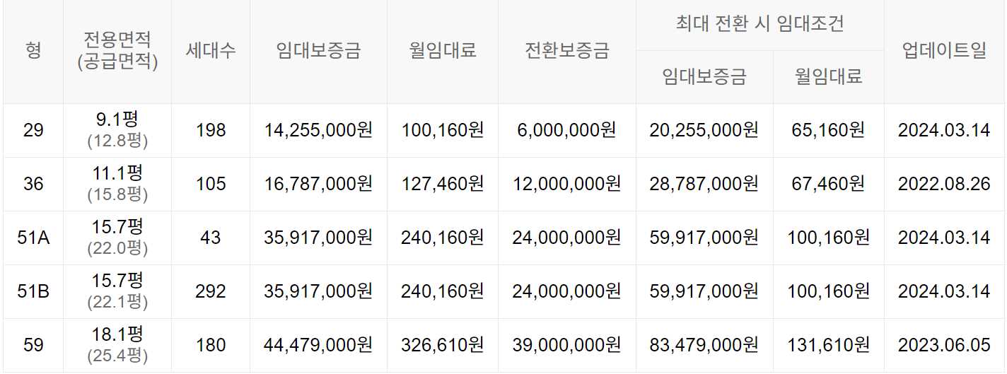 임대보증금 및 월 임대료는 입주자 모집공고일 기준이며, 보증금 최대 전환 시 변동될 수 있습니다.