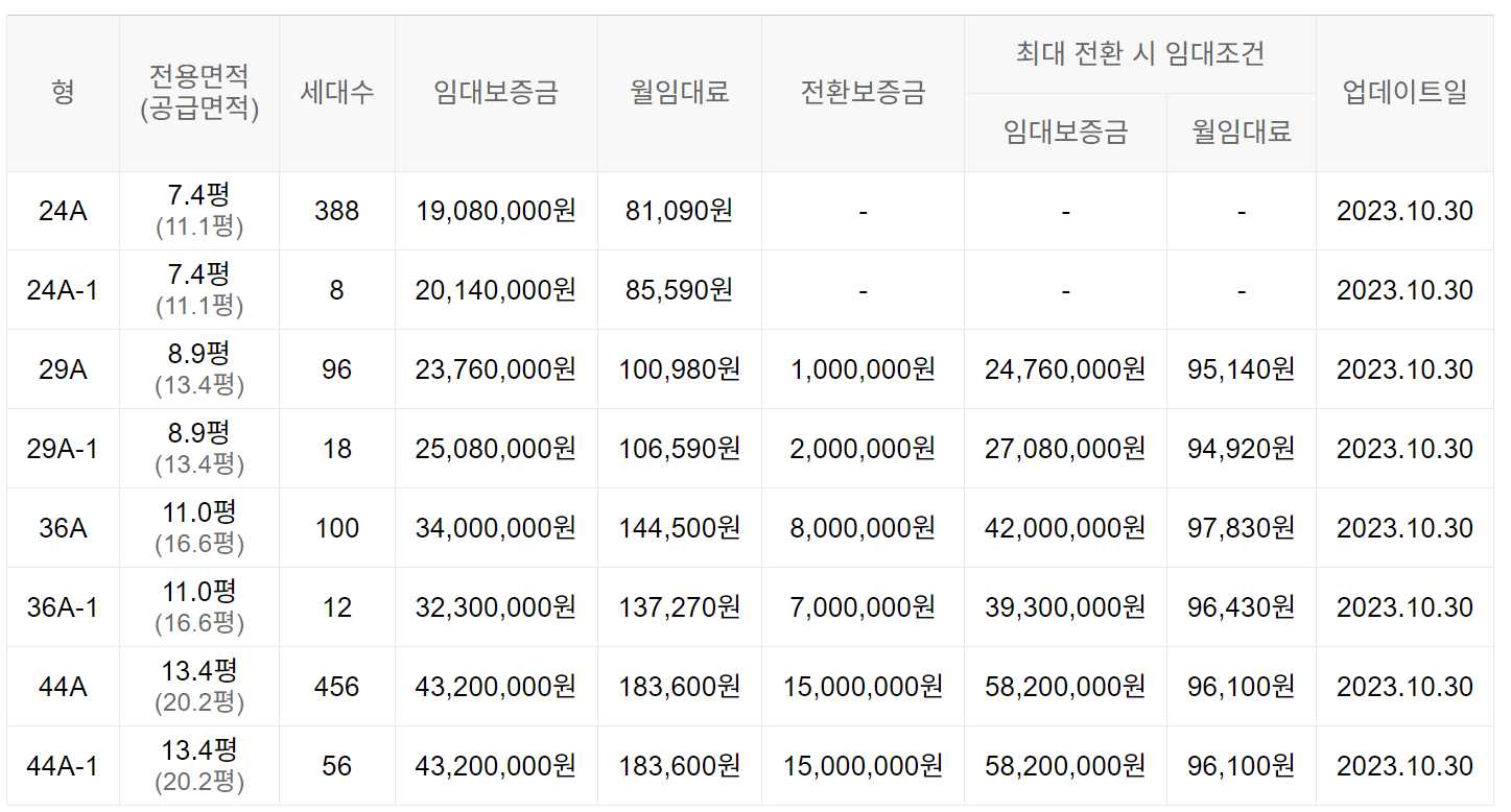 임대보증금 및 월 임대료는 입주자 모집공고일 기준이며, 보증금 최대 전환 시 변동될 수 있습니다.
