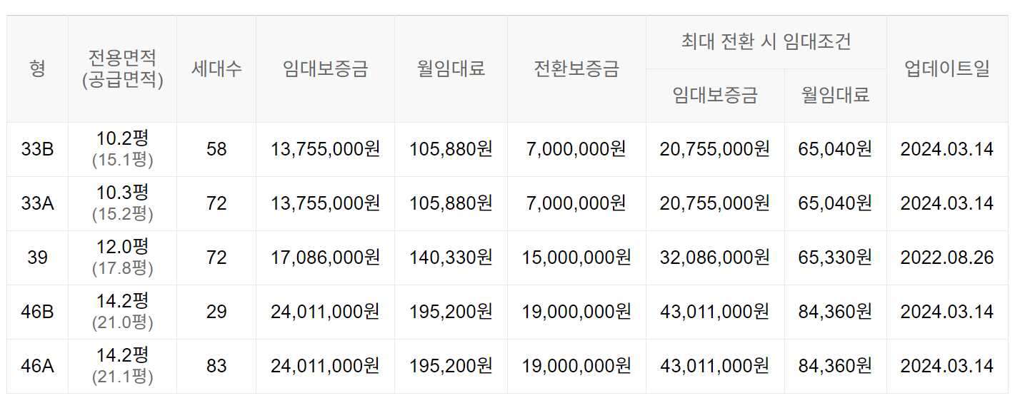 임대보증금 및 월 임대료는 입주자 모집공고일 기준이며, 보증금 최대 전환 시 변동될 수 있습니다.