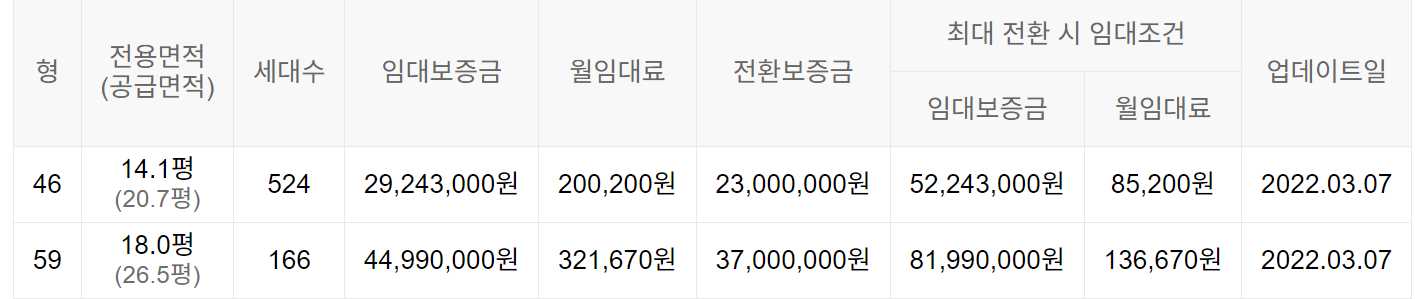 임대보증금 및 월 임대료는 입주자 모집공고일 기준이며, 보증금 최대 전환 시 변동될 수 있습니다.