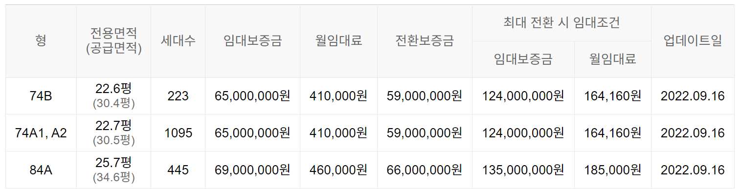 임대보증금 및 월 임대료는 입주자 모집공고일 기준이며, 보증금 최대 전환 시 변동될 수 있습니다.