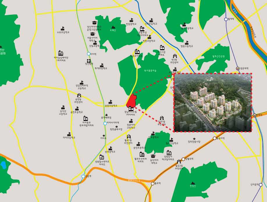 꿈의숲롯데캐슬는 서울 강북구 미아사거리역 근처에 위치하고 있습니다.