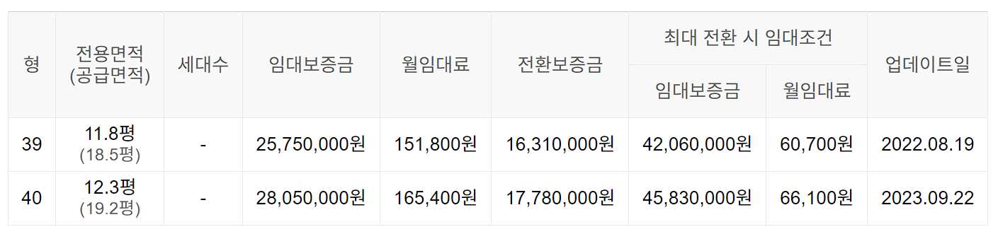 임대보증금 및 월 임대료는 입주자 모집공고일 기준이며, 보증금 최대 전환 시 변동될 수 있습니다.