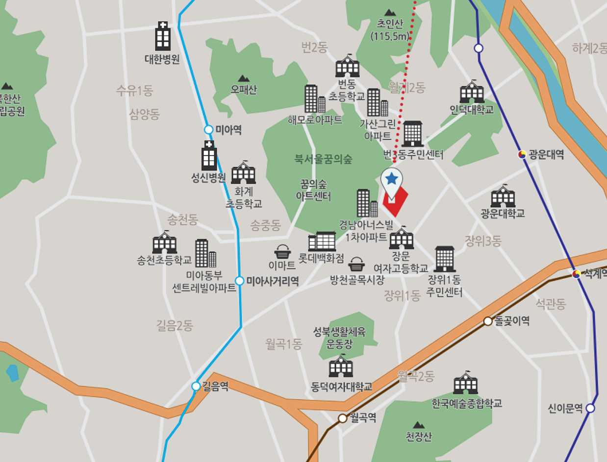꿈의숲코오롱하늘채는 서울 성북구 북서울꿈의숲 근처에 위치하고 있습니다.