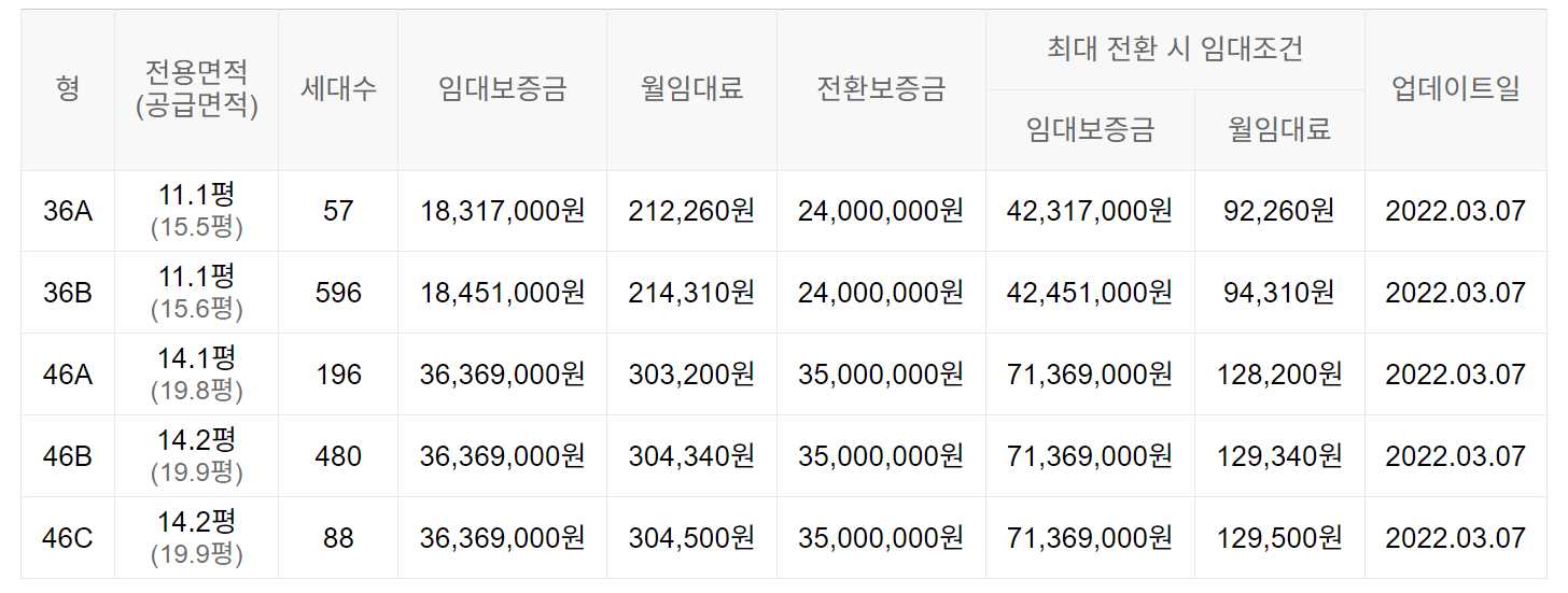 임대보증금 및 월 임대료는 입주자 모집공고일 기준이며, 보증금 최대 전환 시 변동될 수 있습니다.